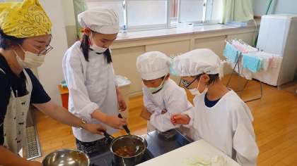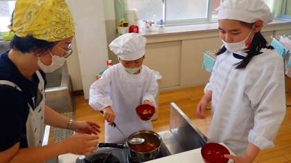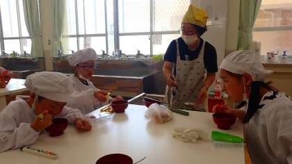 コスモス学級では,2年生,5年生の子どもたちが「おみそ汁」をつくりました。