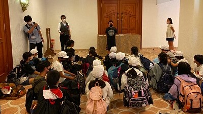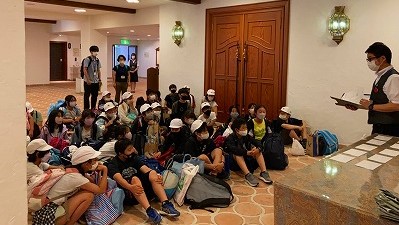 到着後,入館式を行いました。ひと晩お世話になるホテルのスタッフの方にご挨拶をし,お話を聞きました。