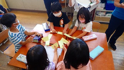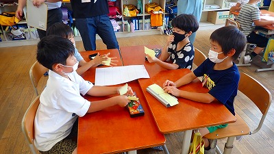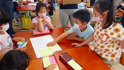 今日は,お店ごとのグループで,インタビューの内容を話し合いました。