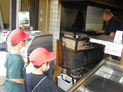 このグループは,うなぎ屋さんにインタビューに行きました。うなぎ屋さんでは,実際にウナギを焼くところや,桶に入っているウナギを見せていただきました。とてもいいにおいがあたりに漂っています。