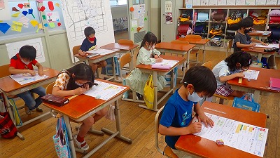 2年生は,算数の「長さ」の単元テストに取り組んでいます。