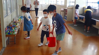 重たいバケツは,一緒に運んであげます。ごみを捨てに行くときにも,やさしく教えてくれました。