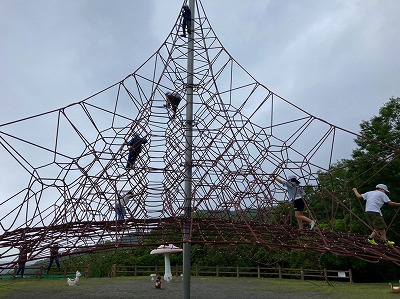 とっても大きな「ロープのぼり」の遊具にも挑戦しました。いちばん上まで登った子もいたそうです。