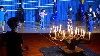「クワガタ音頭」,「もうじゅうがりへ行こうよ」,「船長さんの命令です」などなど,たくさんの出し物で楽しみました。何が一番楽しかったか,帰ってきたら,ぜひ話を聞いてください。