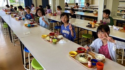 朝の集いの後は,朝食です。今日の活動のエネルギーをしっかり取ってくださいね!