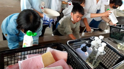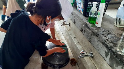 おいしくい食べた後は,片付けをがんばりました。少しも汚れを残すことがないようにていねいに洗い,ごみの始末もきちんとやり切りました。