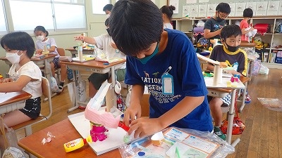 4年生は,図工の「コロコロガーレ」の作品づくりをしています。
