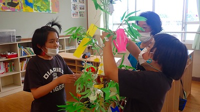 色紙を切り抜いて飾りをつくったり,短冊にお願い事を書いたりしました。願いが叶うとよいですね!