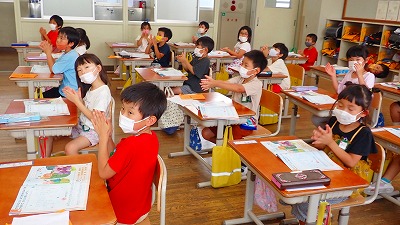 1年生は,音楽の「はくに のって リズムを うとう」の学習をしています。