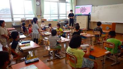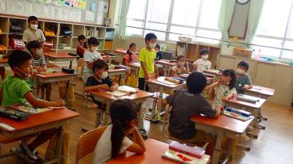 今日は、大事に育ててきたアサガオの成長の様子をふり返りました。毎日欠かさず水やりをして、大きく成長しました。明日からの個人懇談の際に家庭に持ち帰っていただき、夏休み中も観察を続けてもらいます。どうぞよろしくお願いします。