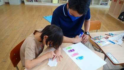 今日は、みんなで「さかなつりゲーム」の準備をしていました。小さな魚にていねいに色を塗ったり、魚にクリップをつけたり、磁石を使った竿での釣れ具合を確かめたりしました。