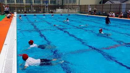 5・6年生は、体育の「水泳運動」の学習をしています。