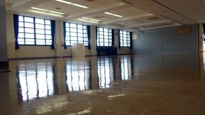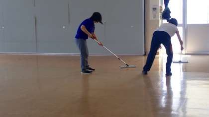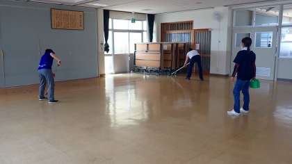 広い多目的ホールですが、「プロ並の腕前」を身につけた教職員の手によって、ピカピカに仕上がりました!