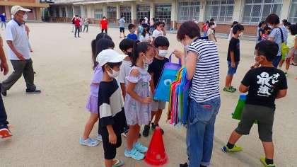 体操が終わった後は、がんばったご褒美をいただきました。子どもたちは、みんなうれしそうに受け取っていました。