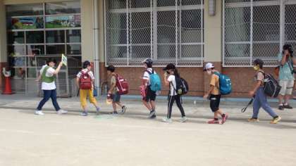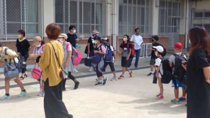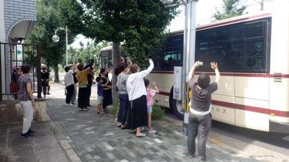 お話を聞いた後は,いよいよ出発です。バスに分かれて乗車し,見送りの保護者の皆さんに手を振って出発しました。