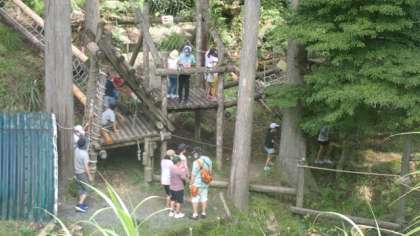 初めの活動は,「冒険の森」でのアスレチックです。注意事項を聞いてから,活動をはじめました。
