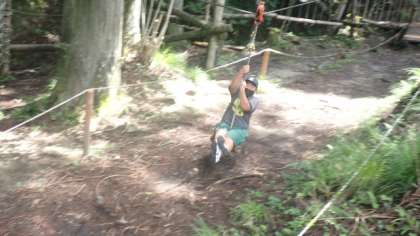 「冒険の森」には、いろいろなアスレチックが用意されています。中には怖いと思うものもありますが、できそうなものに挑戦しています。