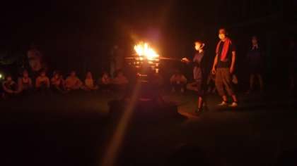 営火長の言葉の後、キャンプファイヤが点火されました。燃え上がる炎に、みんなで拍手をしました。