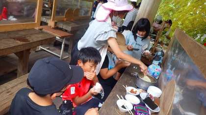 おにぎりは、「ツナマヨネーズ」「かつお」「ごまこんぶ」「ゆかり」など、全部で6種類です。自分の好きな具材を選んでおにぎりを作りました。中には、レシピ無視で「悪魔のおにぎり」をつくる子も…!