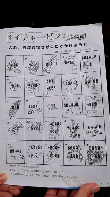 午前中のプログラムの「ネイチャービンゴ」を行っています。