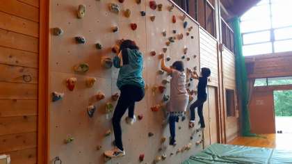 午後のプログラムが始まっています。午後の1つ目のプログラムは、「ボルダリング」です。