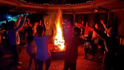 このキャンプファイヤーは、5年生の子どもたちにとって、山の家での大切な思い出になったことでしょう。