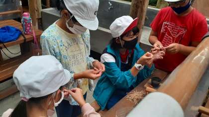 教えていただいた通り、「もぐさ」をつくっています。細かい作業ですが、みんな真剣な表情です。