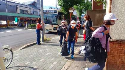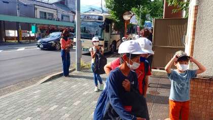 5年生が学校に帰ってきました。ちょっと疲れた様子も見られますが、笑顔で帰ってきました。