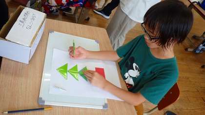 最後に、いろいろな形をつくるために、どんな形の色板が何枚必要かを考えました。