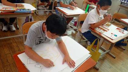 3年生は、図工の「お話を絵にしよう」の作品づくりをしています。
