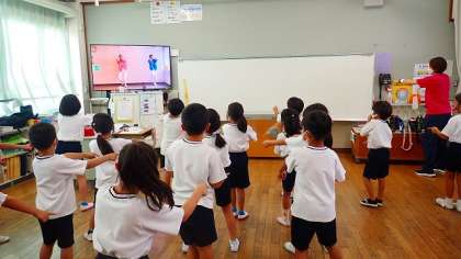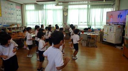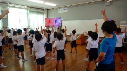 今日から、運動会に向けた練習がスタートしました。今日は、お手本の動画を見ながら、演技で披露するダンスの練習をしています。子どもたちもよく知っている「あの曲」に合わせて、楽しそうに練習していました。