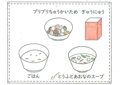 今日は、子どもたちの人気ナンバーワン「プリプリ中華いため」です。名前にもなっているように、こんにゃくやうずら卵、しいたけなど、プリプリした食感が楽しめる料理です。大きめの鶏肉もとてもやわらかく調理されています。かくし味に「米酢」を使っていることで、味がまとまり、さっぱりとしています。おなかいっぱい、おいしくいただきました。