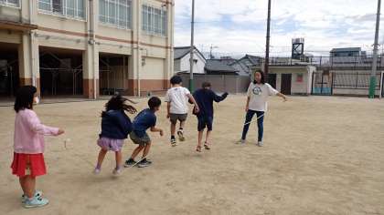 運動場では、大なわとびやボール遊び、だるまさんがころんだなどを楽しんでいました。