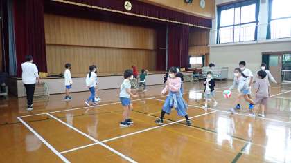 体育館でも、それぞれのグループが決めた遊びを楽しんでいました。どのグループも遊んだ後はふりかえりをしました。