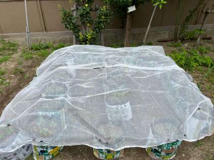 1日ごとに、どんどん成長していく大根。子葉が出てから、どんどん茎がのびてきています。今日は鳥から葉を守るために、ネットをかけました。少し、水やりはしにくいですが、とりあえず来週の間引きをする日まで、全員の大根が無事に育つよう、願いをこめて。