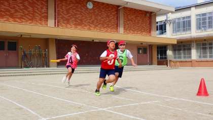 3・4年生は、2学年合同のリレーに取り組みます。今日は、初めてのリレー練習でした。バトンの持ち方や受け渡しの仕方などを確かめながら練習しました。