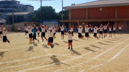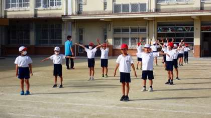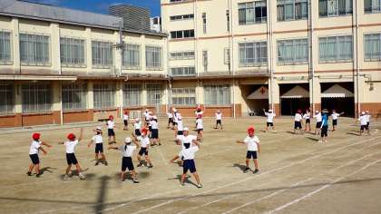今日は、初めて運動場に出て団体演技のダンスの練習をしました。体育館よりも広い運動場ですが、あっという間に自分の立ち位置を覚え、曲に合わせて通し練習をしました。よい表情で、生き生きと踊っています。