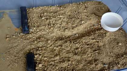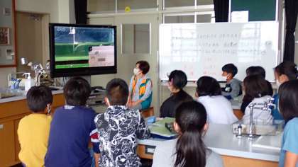 自然の川でも見られる、水の「浸食」「運搬」「堆積」の3つのはたらきが、水の量によってどのように変化するのかを確かめました。実験をしたあとは、動画教材も使って、学びがより確かなものになるようにしています。