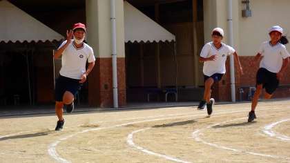 6年生も、100mの最後の練習に取り組みました。スタートとコーナーは本番通りに走りましたが、直線部分ではちょっぴり「手の内を隠しながら」走っています。子どもたちの間では、駆け引きが始まっているようです。本番が楽しみですね!