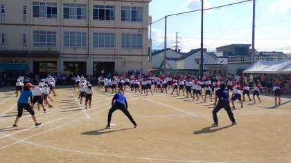 続いて、準備運動を兼ねた全校ダンスを行いました。