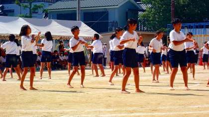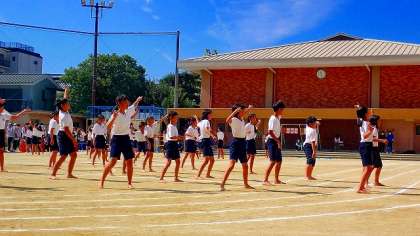 5・6年生54人は、心をひとつにしてこの演技の練習を重ねてきました。ダンス、集団行動、組体操、そしてフラッグの4つの練習は本当に大変でしたが、最後の最後までより良い演技を求めて練習しました。今日は、その成果を発表する舞台です。