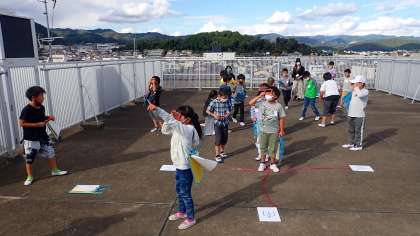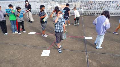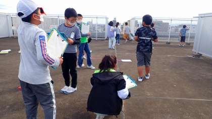1日に何回か太陽の様子を観察し、太陽がどのように動いているかを調べています。5校時に観察に行ったときは太陽が雲に隠れていましたが、かすかな隙間から太陽が見えた瞬間に観察しました。