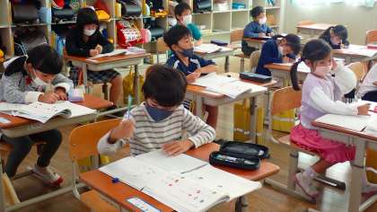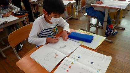 1年生は、国語の「かん字のはなし」の学習をしています。