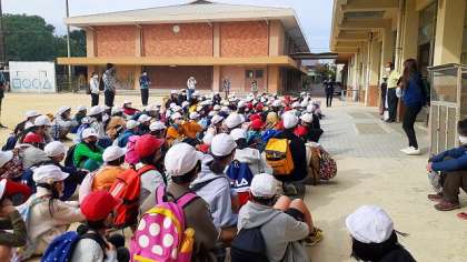 今日は、3年ぶりの「全校遠足」です。府立植物園へ行き、たてわりグループでのラリーをしたり、芝生の広場で一緒に遊んだりして楽しい時間を過ごします。