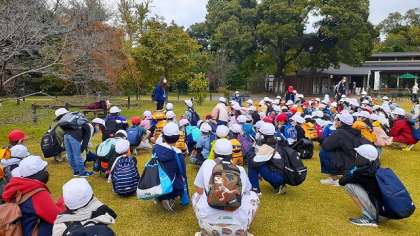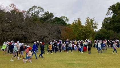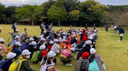 写真を撮り終わったら、大芝生地に集合しました。オリエンテーリングの説明を聞いたら、いよいよ出発です。はじめのポイントをめざして動き出しました。