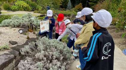 「植物においクイズ!」のポイントです。植物からはいろいろなにおいがしますが、中には、子どもたちの大好きな「あの料理」のにおいのするものもあるそうです。さあ、見つけられるかな?