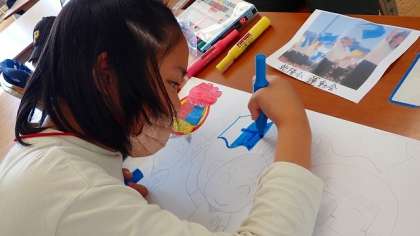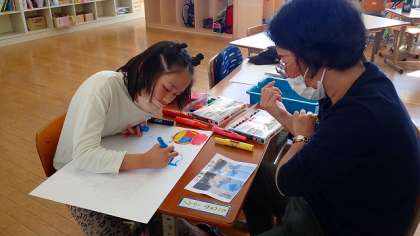 コスモス学級では、6年生が運動会の思い出を絵に表しています。