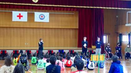 乾隆小学校の体育館を会場として、京都市青少年赤十字教育研究会主催の「ふれあいバスケットボール」が行われました。