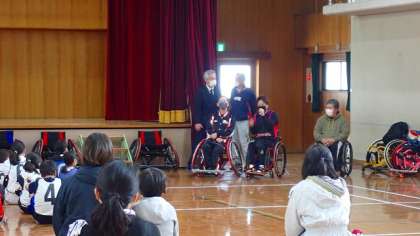 開会式では、あいさつの後、「京都UPS」の監督・選手に、車椅子の操作の仕方やルールなどを教わりました。