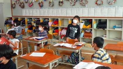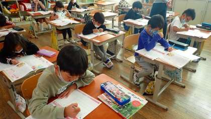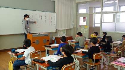 1年生は、道徳の「おふろそうじ」のお話を読み、お話に出てくる「あきら」が、「ぼく、やるもん」と大きな声で言ったわけを考えることを通して、自分がしなければならない勉強や仕事をめあてをもって、しっかり行おうとすることの大切さについて考えました。